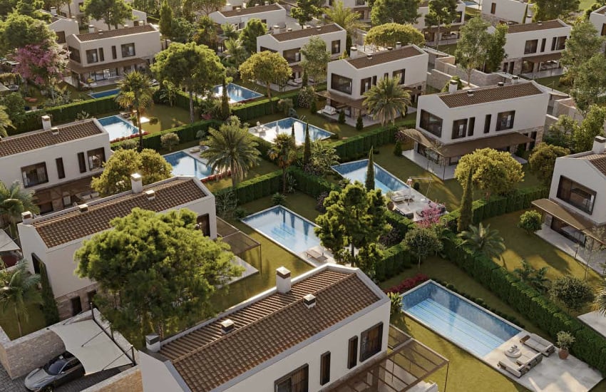 Each villa in the project has its own optional 35 sqm pool, a private large garden, and an open parking area. Inside the villa, there are features such as a video intercom, smart home control panel, underfloor heating system, built-in kitchen appliances, high-quality steel door, ceramic and laminate flooring, shower cabin, aluminum window systems, high-quality kitchen and bathroom cabinets, air conditioning, and a central satellite system.