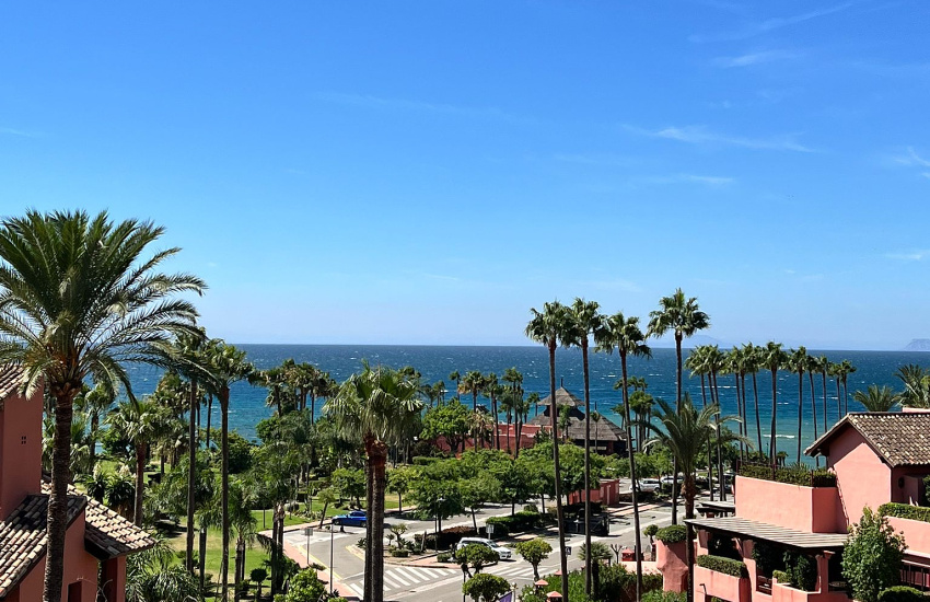 The property for sale in Estepona, Spain, is ideally situated. It is only 400 m from the beach, 14 km from Puerto Banús, 22 km from Marbella city center, and 69 km from Málaga International Airport.