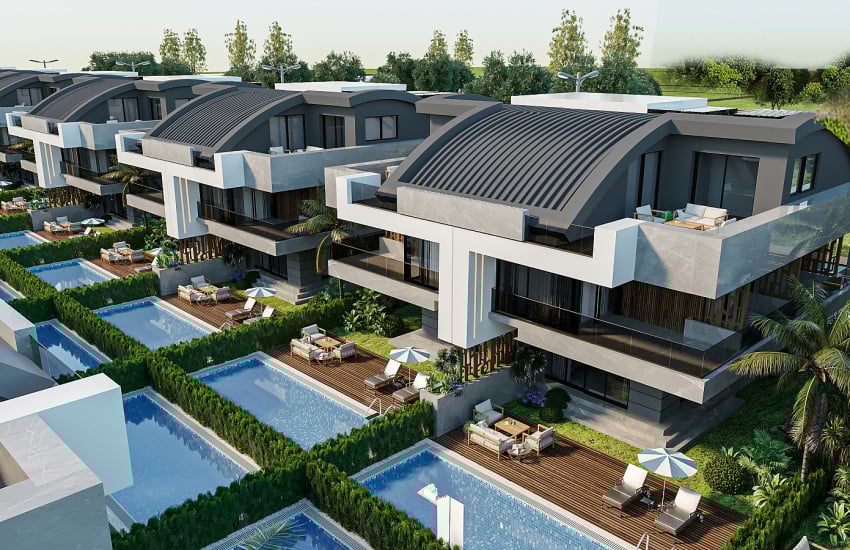 The villa for sale in Belek Antalya has a prime location close to all daily essentials. It is only 300 m from markets and restaurants, 500 m from a pharmacy, 550 m from an ATM, 2 km from the golf courses, 2.7 km from Belek Beach, 5 km from the Private American Hospital, 8.8 km from The Land of Legends Theme Park, and 35 km from Antalya International Airport.