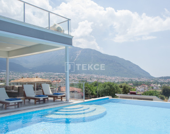 The villa for sale is equipped with very stylish furnishings and details. It offers unobstructed views of all the beauties of the magnificent valley stretching from the foothills of Mendos and Babadağ to Ölüdeniz from its large garden, pool, jacuzzi, and sun terraces with a usage area of 450 sqm.