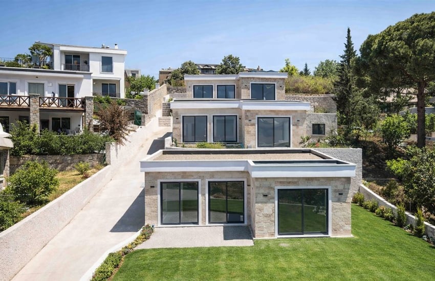 Villas for sale in Bodrum are within walking distance of daily amenities and social facilities. The houses for sale are located 400 m from the beach, 2.5 km from Gümüşlük, 6 km from Turgutreis D-Marin, 12 km from Yalıkavak Marina, 20 km from Bodrum State Hospital, 22 km from Bodrum town center, and 55 km from Bodrum-Milas Airport.