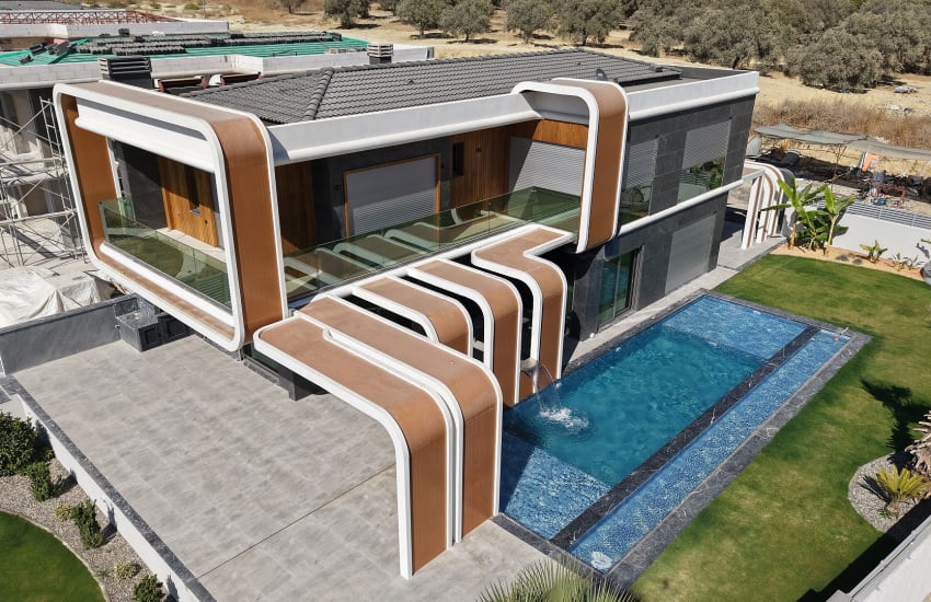 The villas for sale in Kuşadası, Turkey are situated on large plots ranging from 850 to 900 m². All of the villas feature a private swimming pool, a fully fenced private garden, a poolside sun terrace, a personal parking area, and a smart home system.
