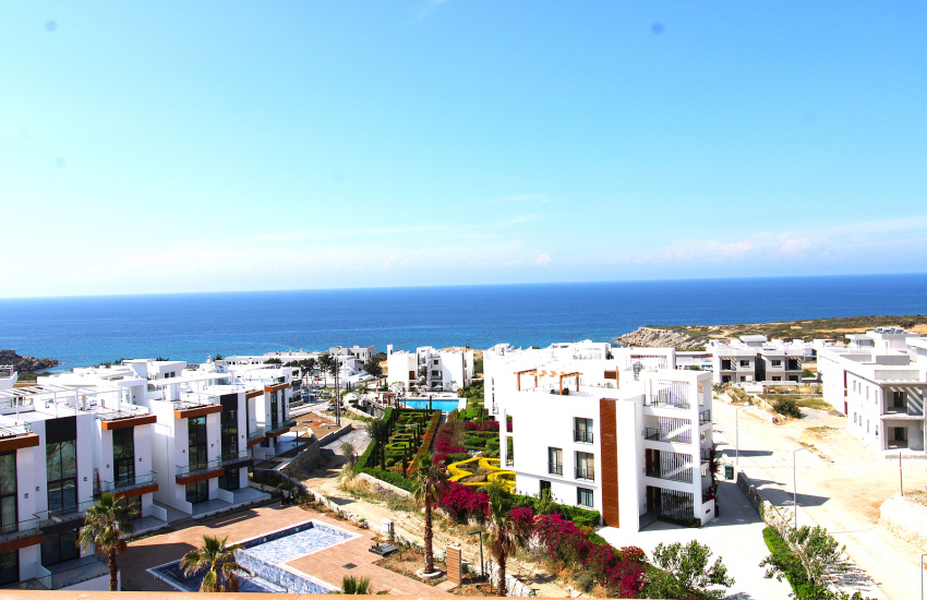 The apartment for sale in North Cyprus Girne is located 150 m from the Girne-Esentepe highway, 350 m from Esentepe Public Beach, 8 km from Korineum Golf Club, 11 km from Alagadi Turtle Beach, 18 km from Girne city center, 25 km from Dr. Suat Günsel Hospital and Girne University, 27 km from Girne Harbour, 40 km from Ercan Airport, and 80 km from Larnaca Airport.