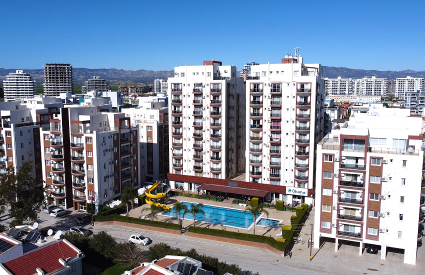 Apartment for sale in Iskele, Northern Cyprus is located 250 m from the sea and Long Beach, 1 km from Long Beach Medical Center, 4 km from Iskele city center, 9 km from Near East College and Near East Hospital, 13 km from Eastern Mediterranean University, 14 km from Famagusta city center, 50 km from Ercan International Airport, and 70 km from Larnaca International Airport.
