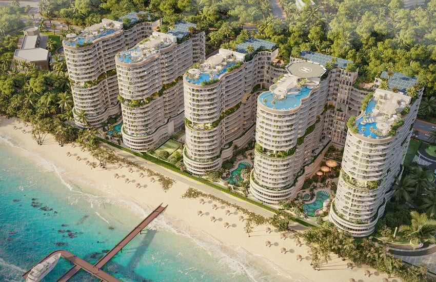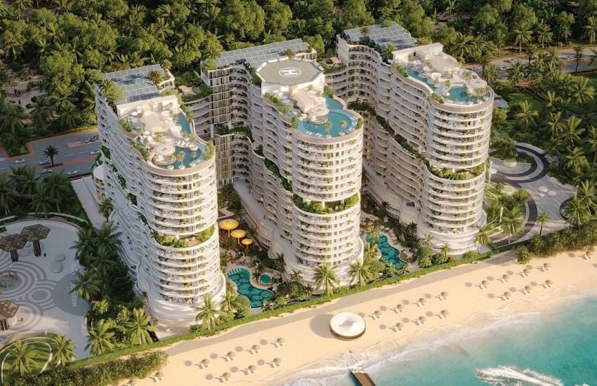 Fully furnished beachfront apartments are designed as an integrative wellness-focused resort community. The development features over 800 fully furnished smart apartments ranging from studios to spacious family-sized layouts, all finished to hotel-quality standards. Residents enjoy more than 100 amenities, including infinity pools with lagoon and sea views, spa and wellness zones, hydrotherapy and cryotherapy rooms, yoga and pilates studios, and a panoramic beach-view gym. Additional facilities include salt rooms, boxing and HIIT studios, bowling lanes, a golf simulator, VR and arcade rooms, a private cinema, cigar lounge, co-working areas, kids' play spaces, padel courts, an organic supermarket, fine dining restaurants, and an exclusive beach club.