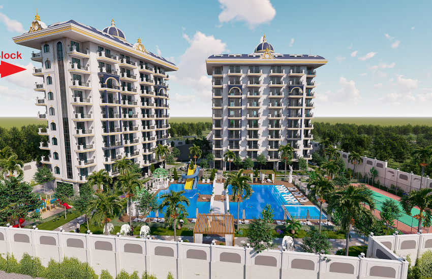 شقة مطلة على المدينة والمسبح للبيع في مجمع مكوّن من مبنيين مع مرافق اجتماعية في أفسلار، ألانيا