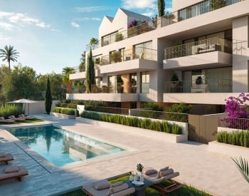 Der Wohnkomplex befindet sich auf einem Grundstück von über 3.000 Quadratmetern und ist so konzipiert, dass er Privatsphäre, Komfort und eine starke Verbindung zur Natur bietet. Zu den Gemeinschaftsbereichen gehören Landschaftsgärten mit üppigem Grün und sorgfältig ausgewählter Vegetation, die eine ruhige und harmonische Umgebung schaffen. Ein gemeinschaftlicher Pool bildet das Herzstück der Außenanlagen und lädt die Bewohner dazu ein, sich zu entspannen und das südliche Klima zu genießen, während das Gesamtdesign an traditionelle Dächer in Kombination mit moderner mediterraner Eleganz erinnert. Mehrere Zugangspunkte gewährleisten einen reibungslosen und komfortablen Zugang für die Bewohner.
