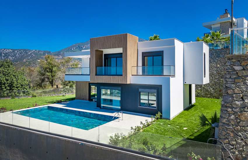 Die Villa wurde auf einem 653 m² großen Grundstück erbaut und besteht aus zwei Etagen. Die Villa verfügt über einen privaten Pool, einen Garten und einen Parkplatz. Die Villa bietet Meer-, Stadt- und Bergblick und umfasst 4 Schlafzimmer, 4 Badezimmer, 3 Balkone, eine offene Küche und ein Wohnzimmer. Die großzügige Raumaufteilung, das moderne Design, die großen Fenster und die malerische Aussicht schaffen einen komfortablen und angenehmen Wohnraum.