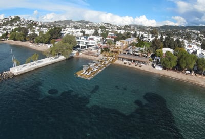 El hotel en Bodrum Yalıkavak se encuentra frente al mar e incluye 9 unidades amuebladas, una oficina, un bar y un restaurante, además de un muelle privado y una zona de playa.