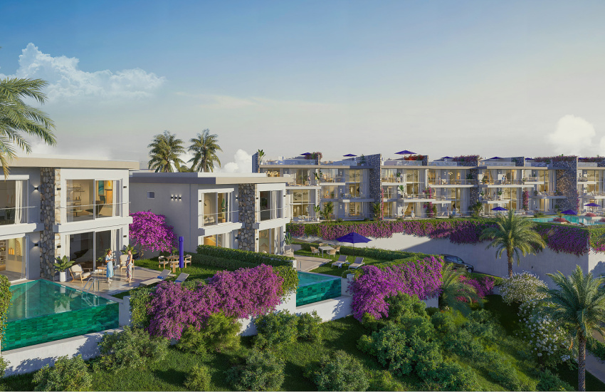 آپارتمانهایی در گیرنه اسنتپه احاطهشده توسط جنگلهای کاج با منظره بیپایان مدیترانه