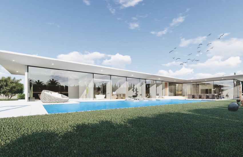 La villa individuelle comprend un spacieux séjour, une entrée, une cuisine ouverte (possibilité de la fermer), cinq chambres avec salles de bains privatives, une salle de bains invités, un dressing, un logement pour le personnel, une salle de cinéma, une cave à vin, un local technique, une buanderie, des espaces de rangement, un jacuzzi et un sauna.