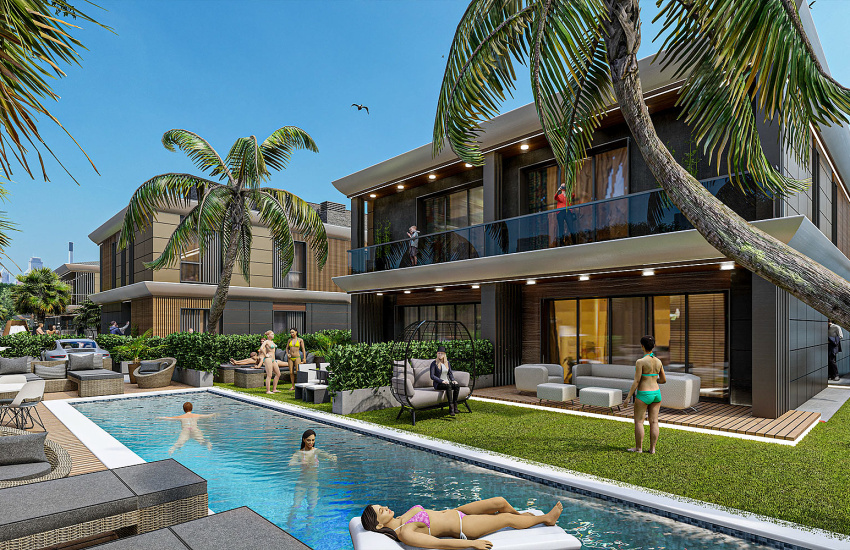 Le projet, construit sur une superficie totale de 2 218 m², comprend 8 villas jumelées, toutes avec une configuration 4+1. Les équipements du projet incluent une piscine, un jardin, un système de caméras et une station de recharge pour véhicules électriques. Chaque villa dispose également de 2 places de parking extérieures.