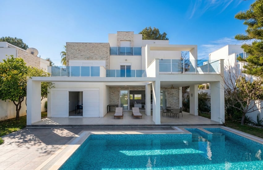 Construite sur un terrain de 655 m², la villa offre une surface habitable brute de 310 m² et une surface habitable nette de 275 m². Ce triplex comprend 4 chambres, un salon, 4 salles de bains et 2 balcons. Il dispose d'une cuisine séparée et spacieuse, ainsi que de 2 chambres au rez-de-chaussée.