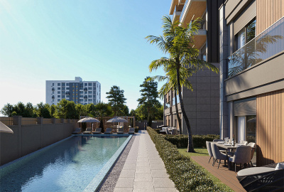 Appartements modernes à vendre à Konyaaltı, Antalya. Situés dans une résidence avec parking intérieur et piscine, ces appartements offrent un confort optimal à proximité de la plage.