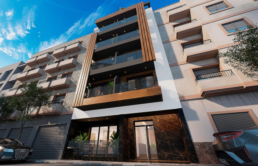 De appartementen zijn beschikbaar in studio-, 1-slaapkamer- en 2-slaapkamerindelingen, variërend van 62 m² tot 100 m². Elk appartement is ontworpen voor modern comfort, met open woonruimtes met grote ramen die het natuurlijke licht maximaliseren, stijlvolle keukens met moderne afwerkingen en elegante badkamers. Ze zijn voorzien van voorgeïnstalleerde airconditioning, aerothermische warmwatersystemen en een energielabel A+, wat zowel duurzaamheid als gemak biedt. Bewoners op de bovenste verdiepingen profiteren ook van toegang tot een dakterras met een prachtig uitzicht op zee.