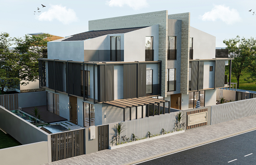 Projekt obejmuje 3 wille zlokalizowane na łącznej powierzchni działki 541 m². Każda willa oferuje 180 m² netto powierzchni użytkowej i posiada ekskluzywne udogodnienia, takie jak prywatny odkryty basen, otwarty parking oraz weranda.
