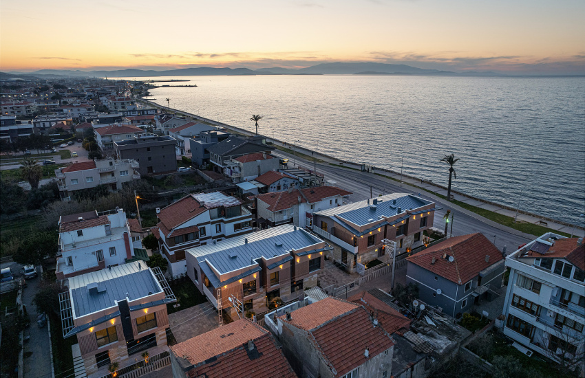Виллы на продажу в Измире расположены всего в 20 метрах от моря. Они также находятся в 250 метрах от магазина, в 300 метрах от прибрежных ресторанов, в 1,8 км от пристани для яхт, в 3,5 км от пляжа, отмеченного Голубым флагом, и в 30 км от международного аэропорта имени Аднана Мендереса.