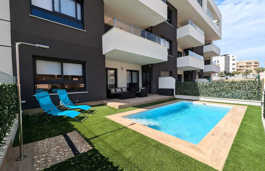 Квартира на первом этаже в Вильямартине расположена в комплексе с собственным бассейном, недалеко от моря и поля для гольфа. В квартире 2 спальни и открытая планировка.