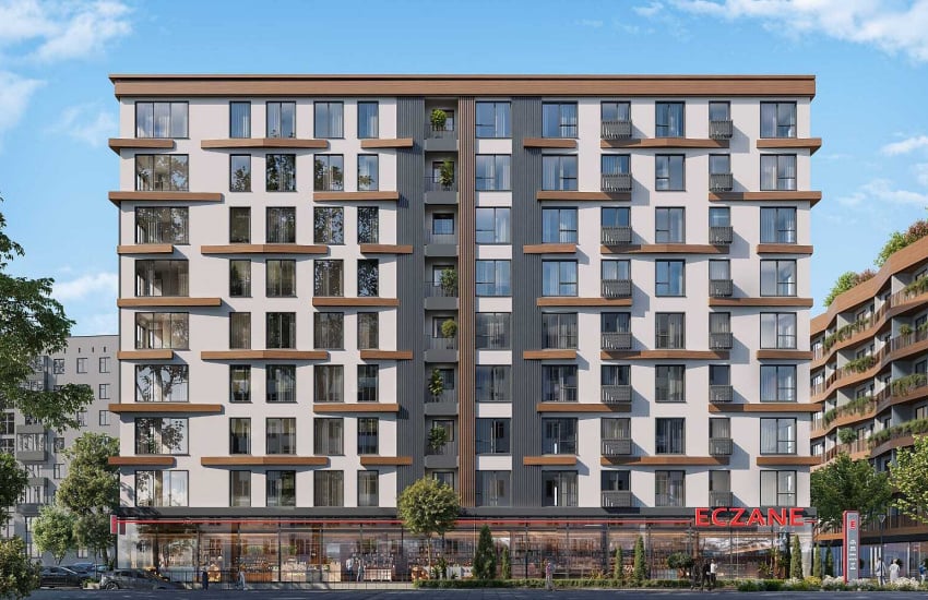 Projektet erbjuder lägenheter med 1 och 2 sovrum. Alla lägenheter är utformade med öppen planlösning för att möta moderna boendebehov. Laminat- och keramikgolv, inbyggda köksapparater, förvaringssystem och PVC-fönster används i utrymmena. Tack vare sin funktionella planlösning och centrala läge erbjuder projektet både bekvämt boende och stark investeringspotential.