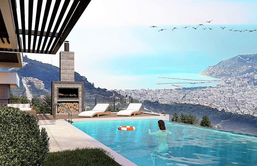 Alanya Bektaş'ta Panoramik Deniz Manzaralı Özel Havuzlu Müstakil Evler