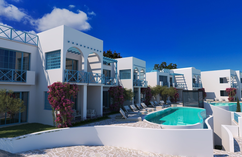 该拉普塔项目受圣托里尼建筑风格启发,由两栋楼共12栋住宅组成。每栋楼包含 6栋连排别墅,封闭社区设计确保居住安全。物业项目配备共享游泳池、管理办公室及景观绿化区。