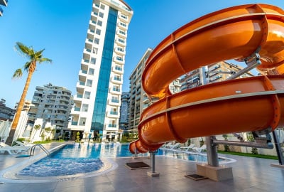 该公寓位于土耳其阿兰亚的一个单栋住宅区内。该项目占地 1700 平方米,配套设施齐全,包括室内外游泳池、健身房、游戏室和桑拿房。